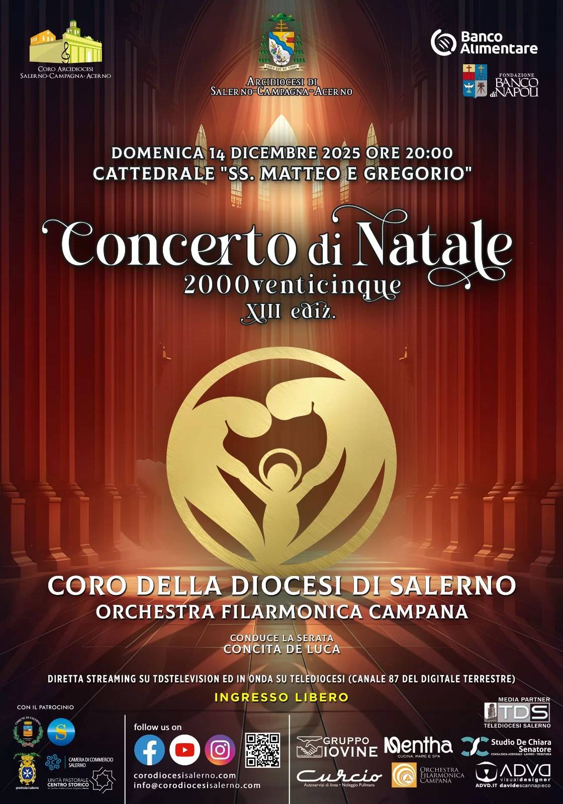 Il Coro dell’Arcidiocesi di Salerno-Campagna-Acerno raggiunge la XIII Edizione dell’ormai tradizionale Concerto di Natale. L’evento vuole essere un momento di condivisione, nella preghiera, nella musica e nel canto, che ci accompagni nell’Attesa.