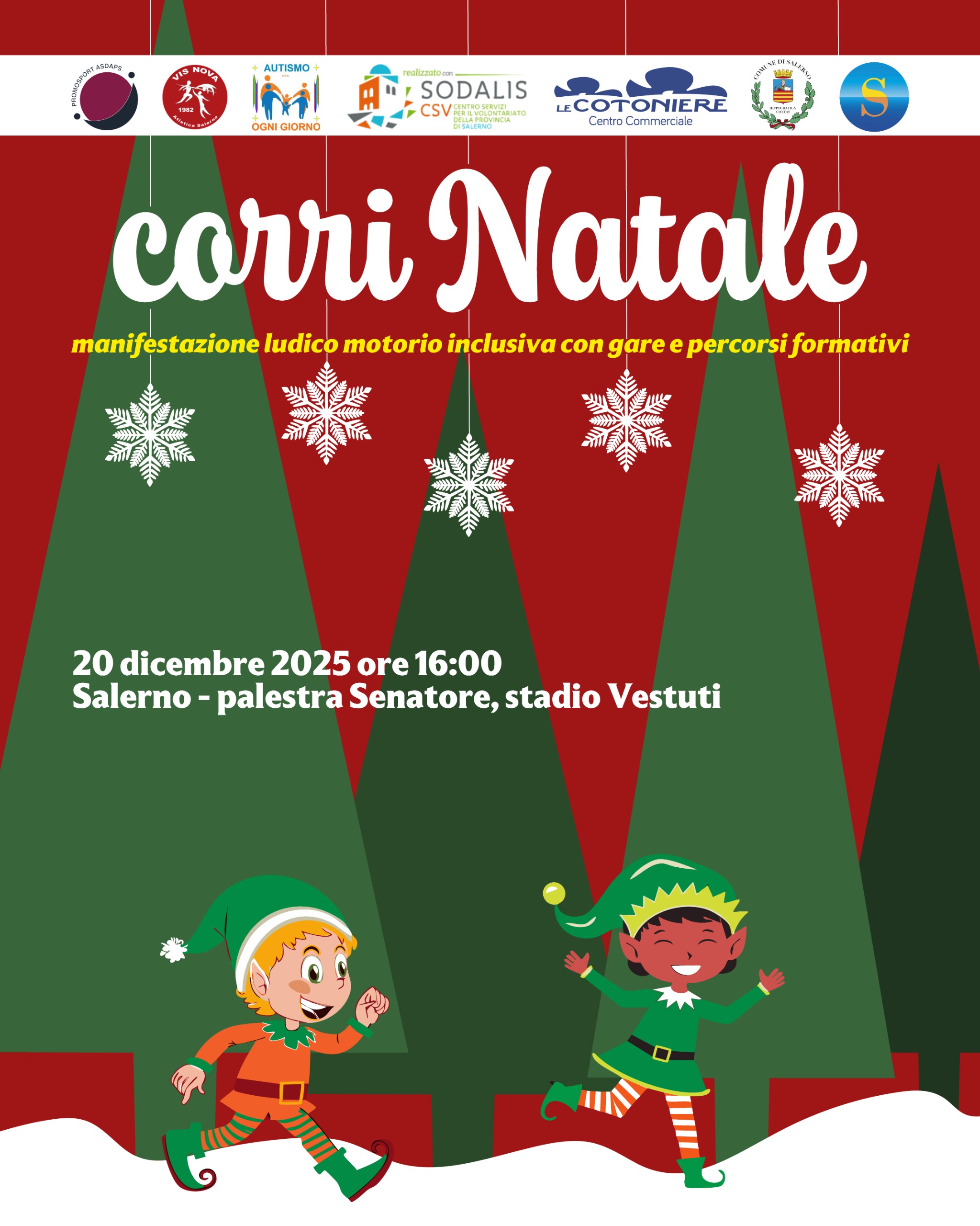 L’Associazione Promosport Salerno, in collaborazione con numerosi partner e con il sostegno di Sodalis CSV Salerno nell’ambito delle M.A.N. (Micro Azioni Natalizie) 2025, invita tutti alla manifestazione “Corri Natale”.