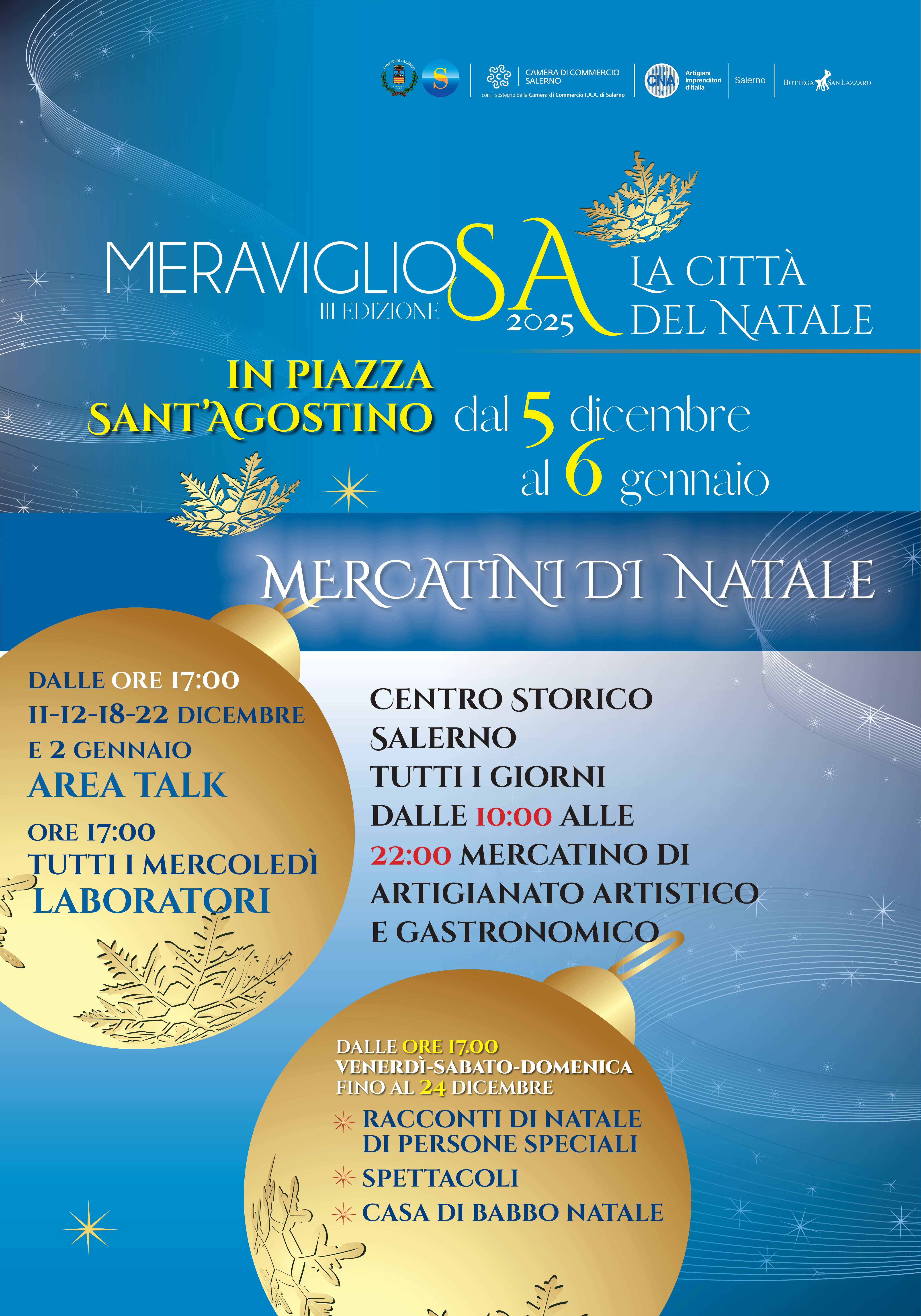 Sta per tornare MeraviglioSA, il magico evento che avvolge il centro storico della città di Salerno in un festoso spirito natalizio.