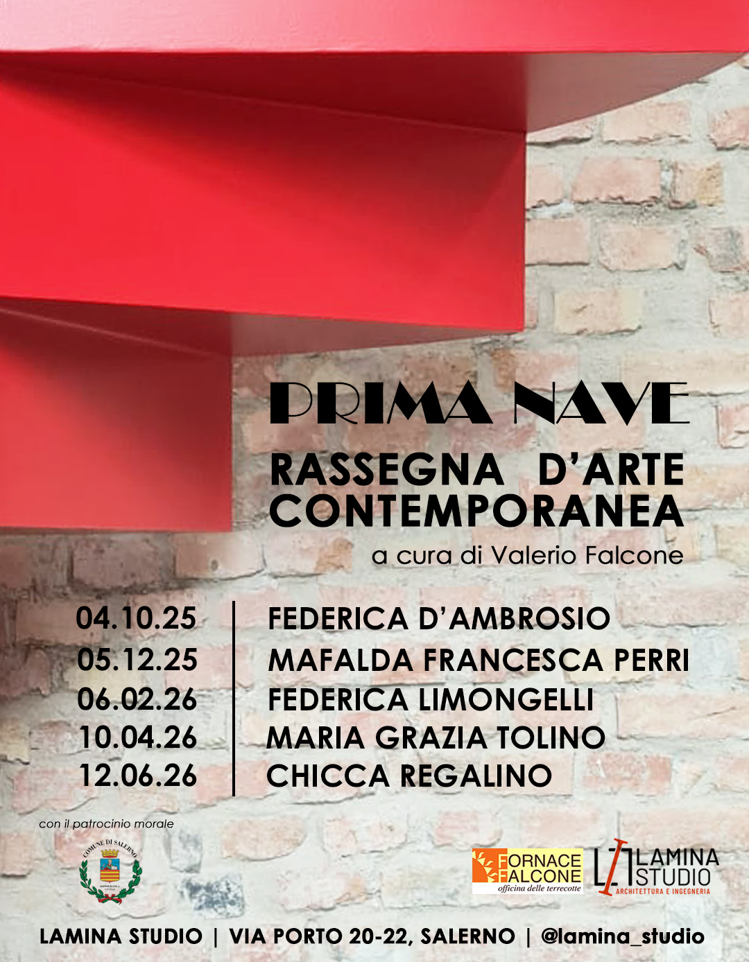A partire dal 4 ottobre 2025, in occasione della Giornata del Contemporaneo promossa da AMACI, lo studio di architettura e ingegneria Lamina Studio inaugura "Prima Nave", una rassegna di arte contemporanea che si svilupperà lungo l’arco di dieci mesi, concludendosi il 31 luglio 2026.