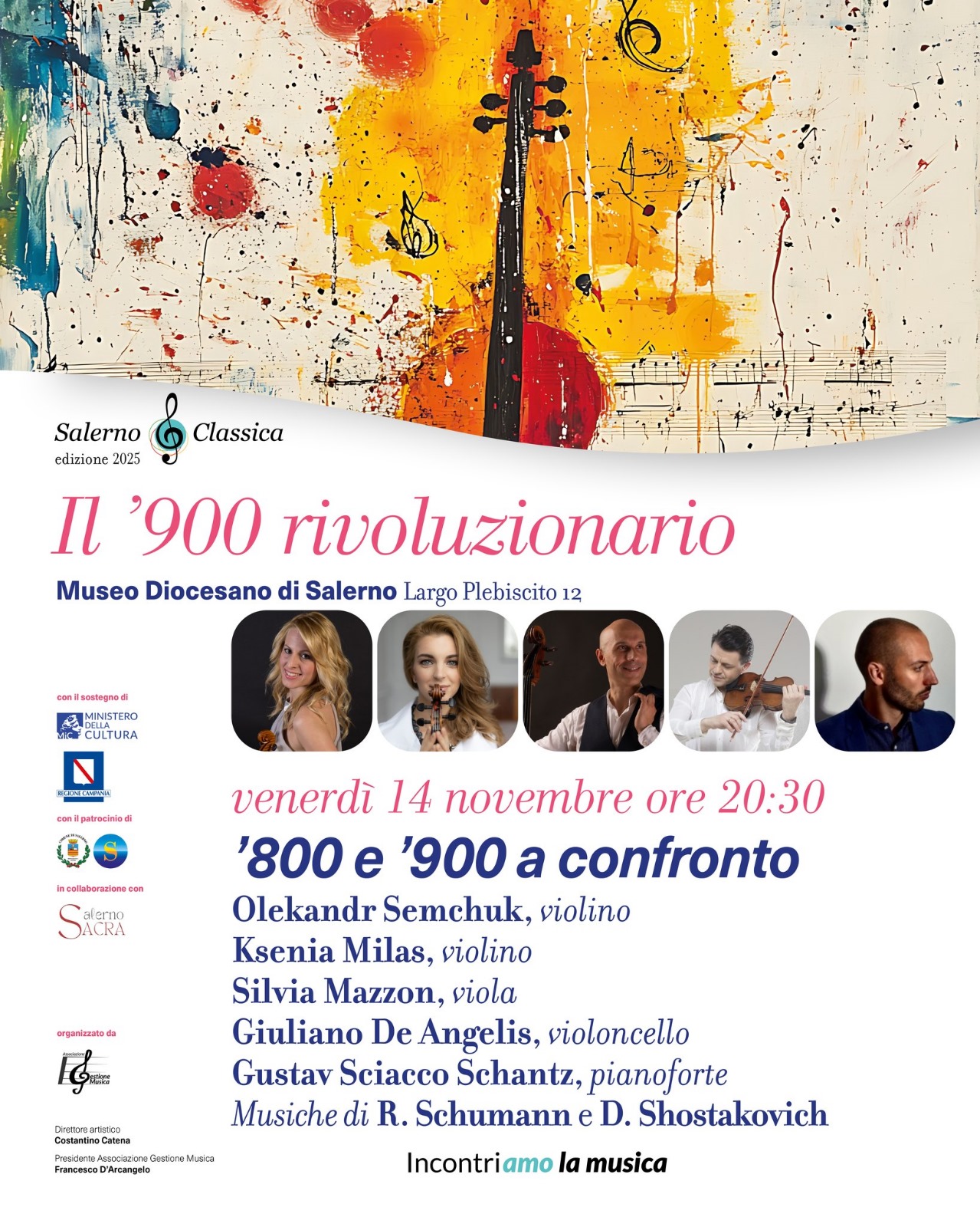 “Salerno Classica – ha dichiarato il Presidente Francesco D’Arcangelo della Associazione Gestione Musica, organizzatrice del cartellone - ritornando al centro di Salerno in un luogo di grande fascino come il museo diocesano propone una serie di tre concerti estremamente vari, dedicati al ‘900, secolo rivoluzionario, un periodo storico che musicalmente ha creato le fondamenta per l’espressività moderna. Ovviamente nel 2025 la “modernità” del ‘900 può considerarsi ampiamente assimilata e quell’avanguardismo oramai più che digerito, rimane comunque un periodo storico culturale di enorme vivacità ed importanza”.