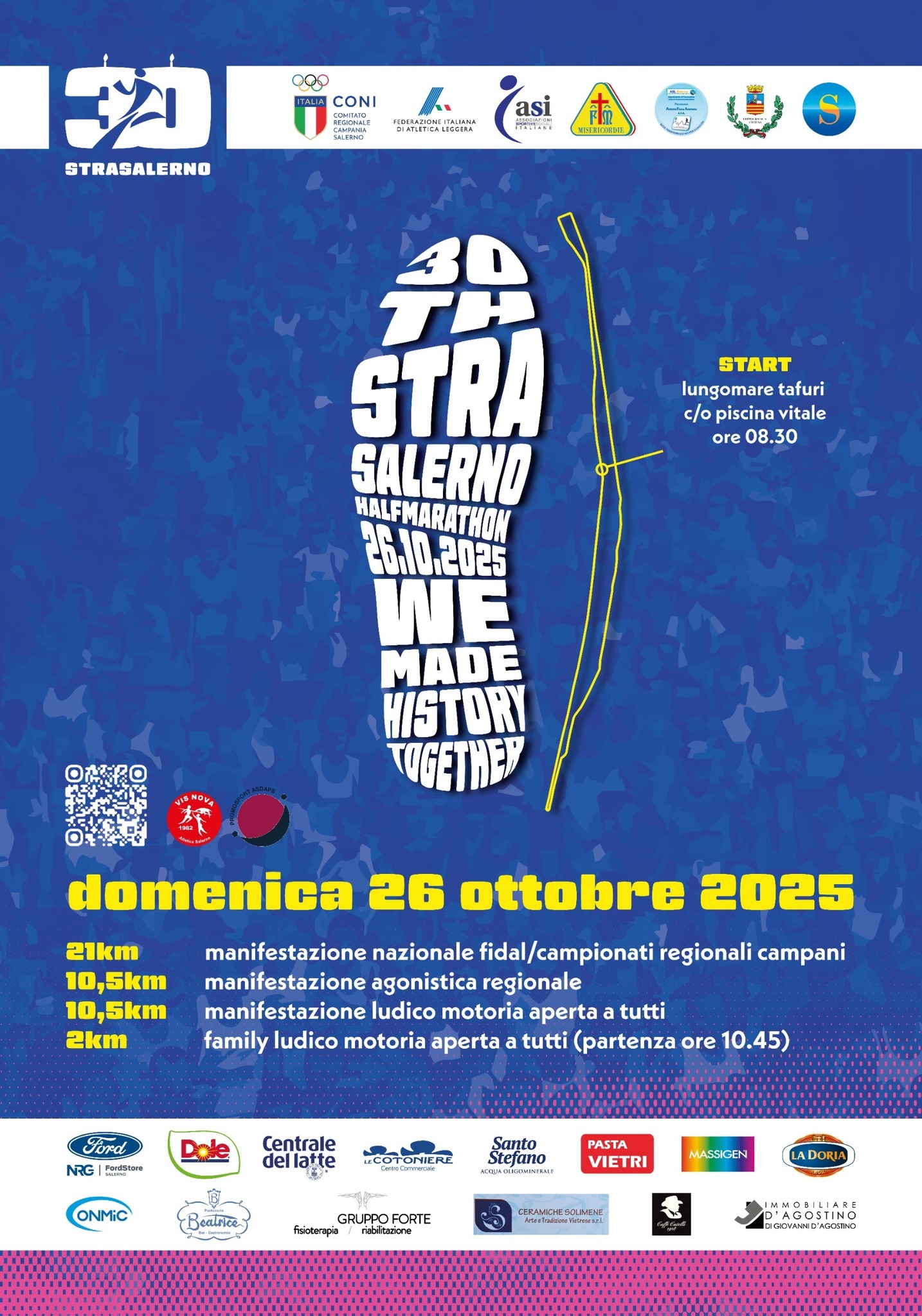 L’evento di quest’anno rappresenta un traguardo particolarmente significativo: trent’anni di corsa, impegno e partecipazione che hanno trasformato la StraSalerno in un appuntamento atteso non solo dagli sportivi ma da tutta la comunità cittadina.