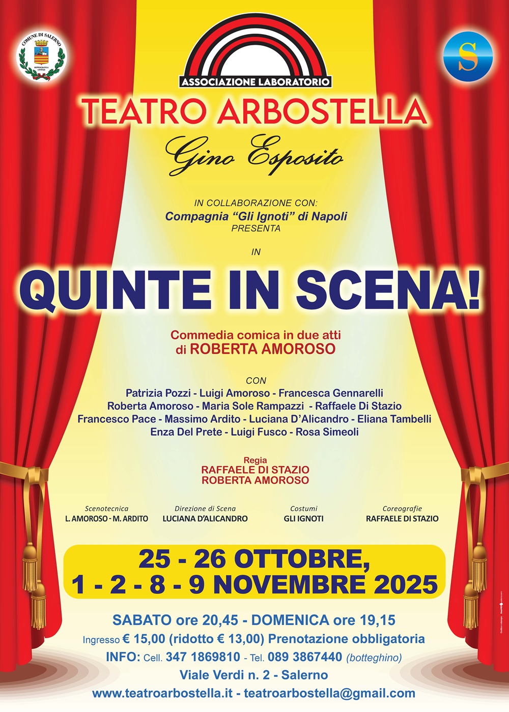 Il Teatro Arbostella Gino Esposito di Salerno, forte del record di oltre 600 abbonamenti sottoscritti per la sua XVIII stagione, si prepara ad alzare il sipario sul suo secondo attesissimo appuntamento. Dopo l’esordio di successo, la direzione artistica guidata da Arturo Esposito e Imma Caracciuolo accoglie il ritorno di una delle compagnie più amate: Gli Ignoti di Napoli.