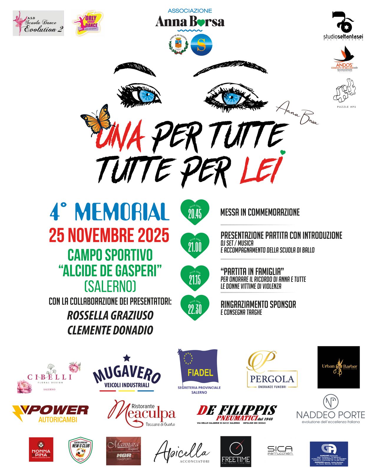 In occasione della Giornata Internazionale per l'eliminazione della violenza contro le donne, si terrà il 4° memorial in onore di Anna Borsa.
